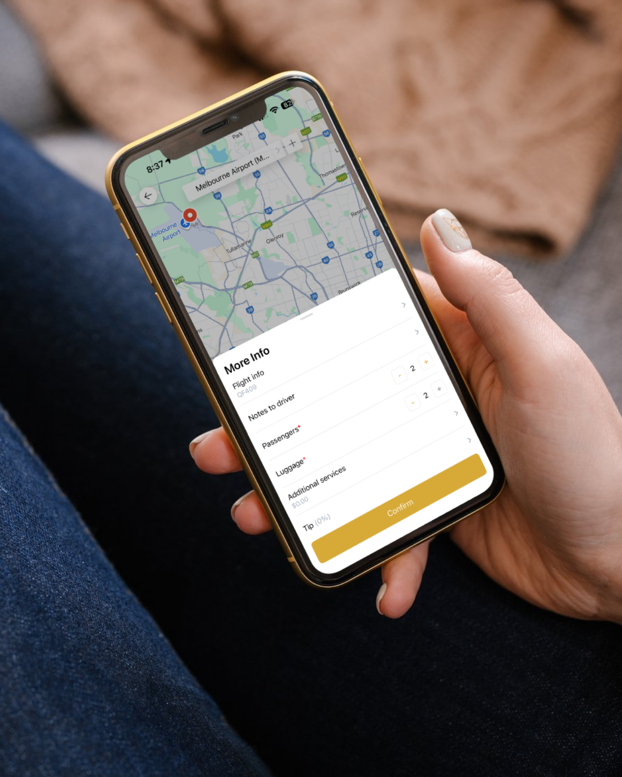 Presenting our state-of-the-art mobile application for premium chauffeur transfer services across Melbourne. Designed with elegance, simplicity and true convenience in mind, our app gives you complete control of your luxury transportation needs — all from your phone.